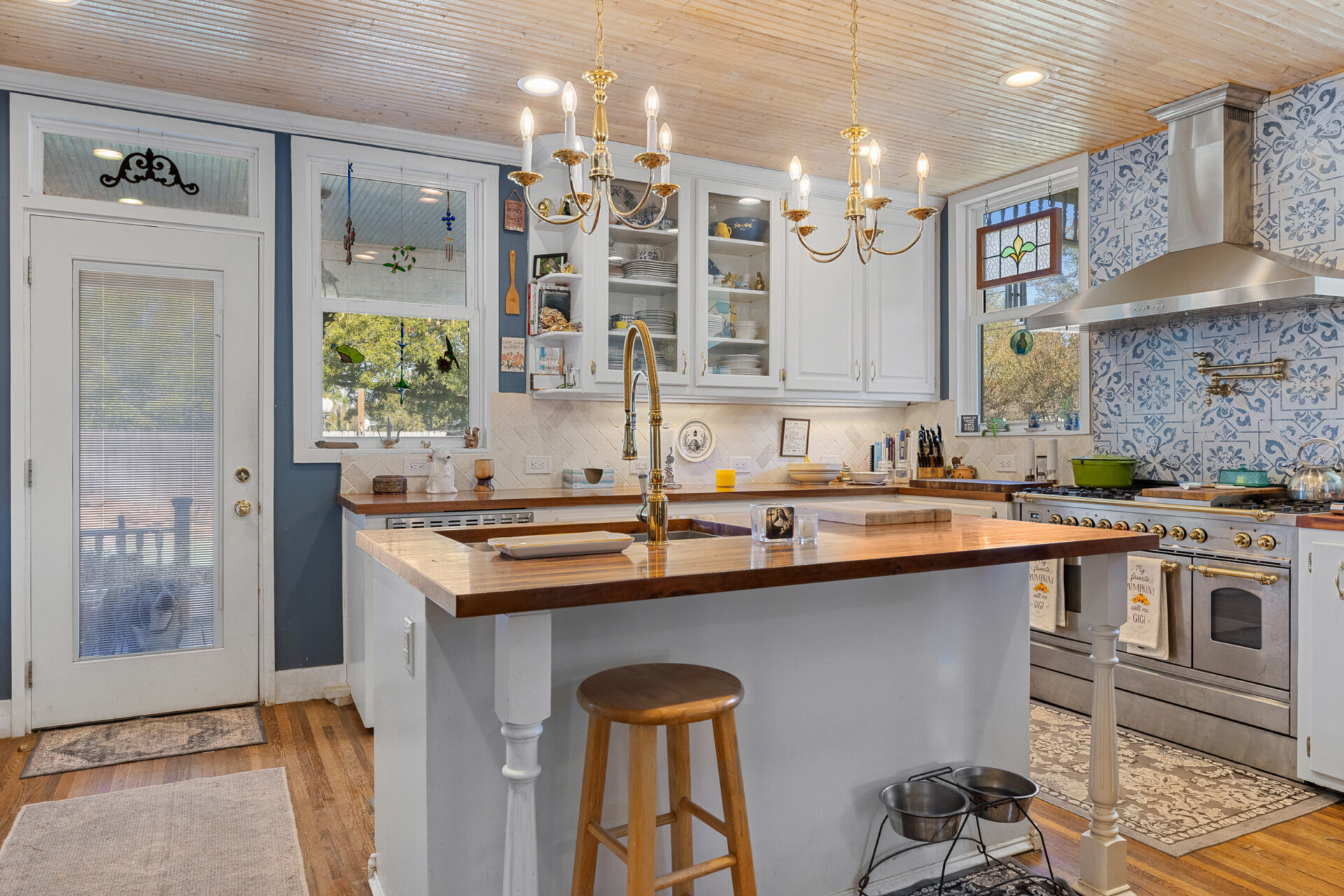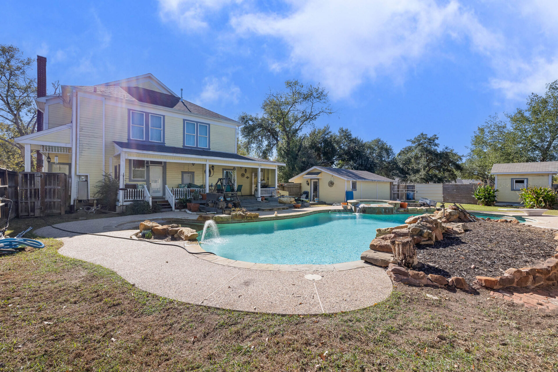 The remodeled kitchen, sitting room, and downstairs bath offer the perfect blend of old and new, creating spaces that feel both refined and welcoming. Outdoors, enjoy mornings on the front porch, relax in the shade of the side porch, or unwind on the back porch overlooking the in-ground pool and hot tub. A charming side area provides the perfect spot for a future courtyard, adding even more potential to this unique property.