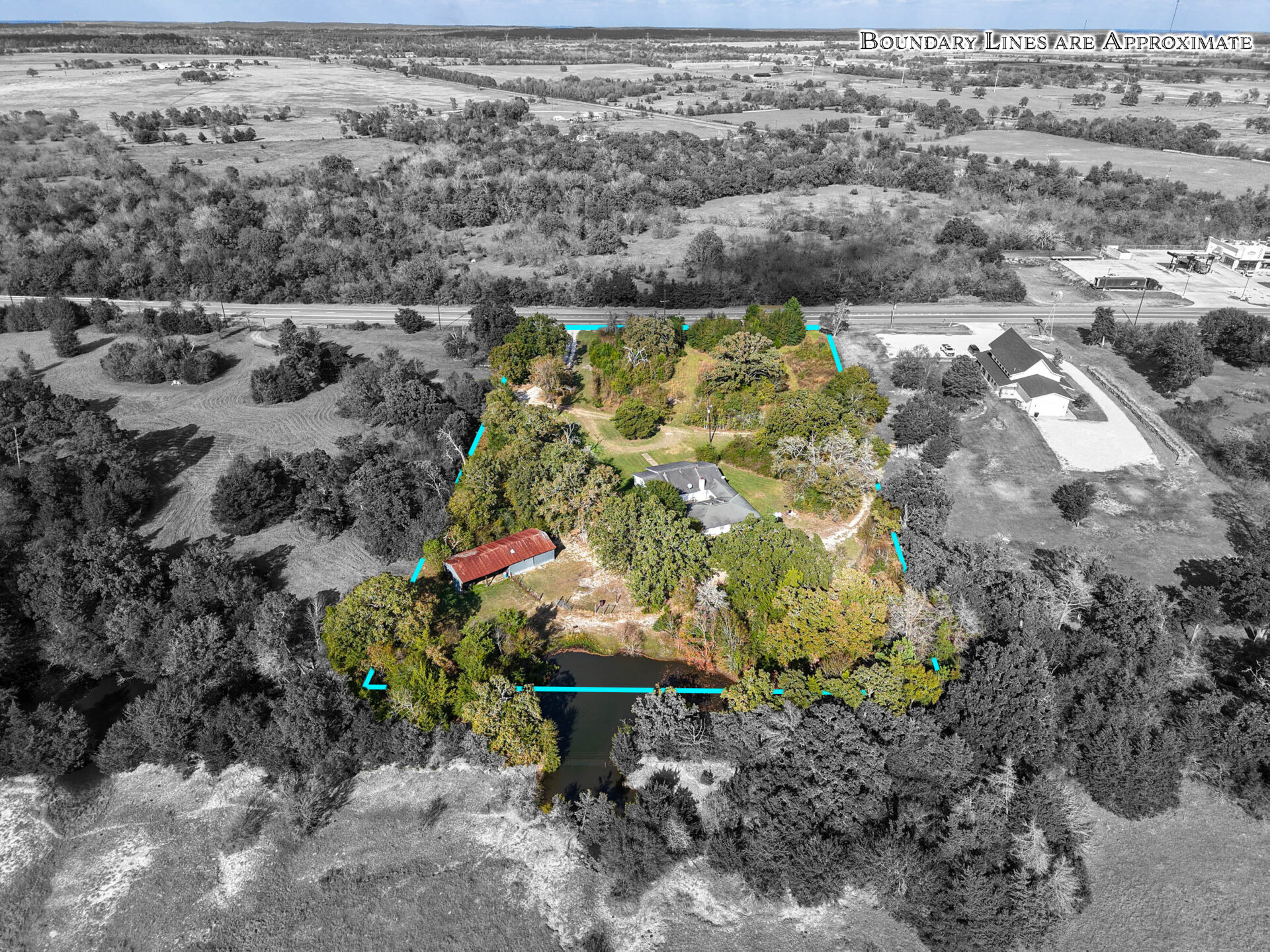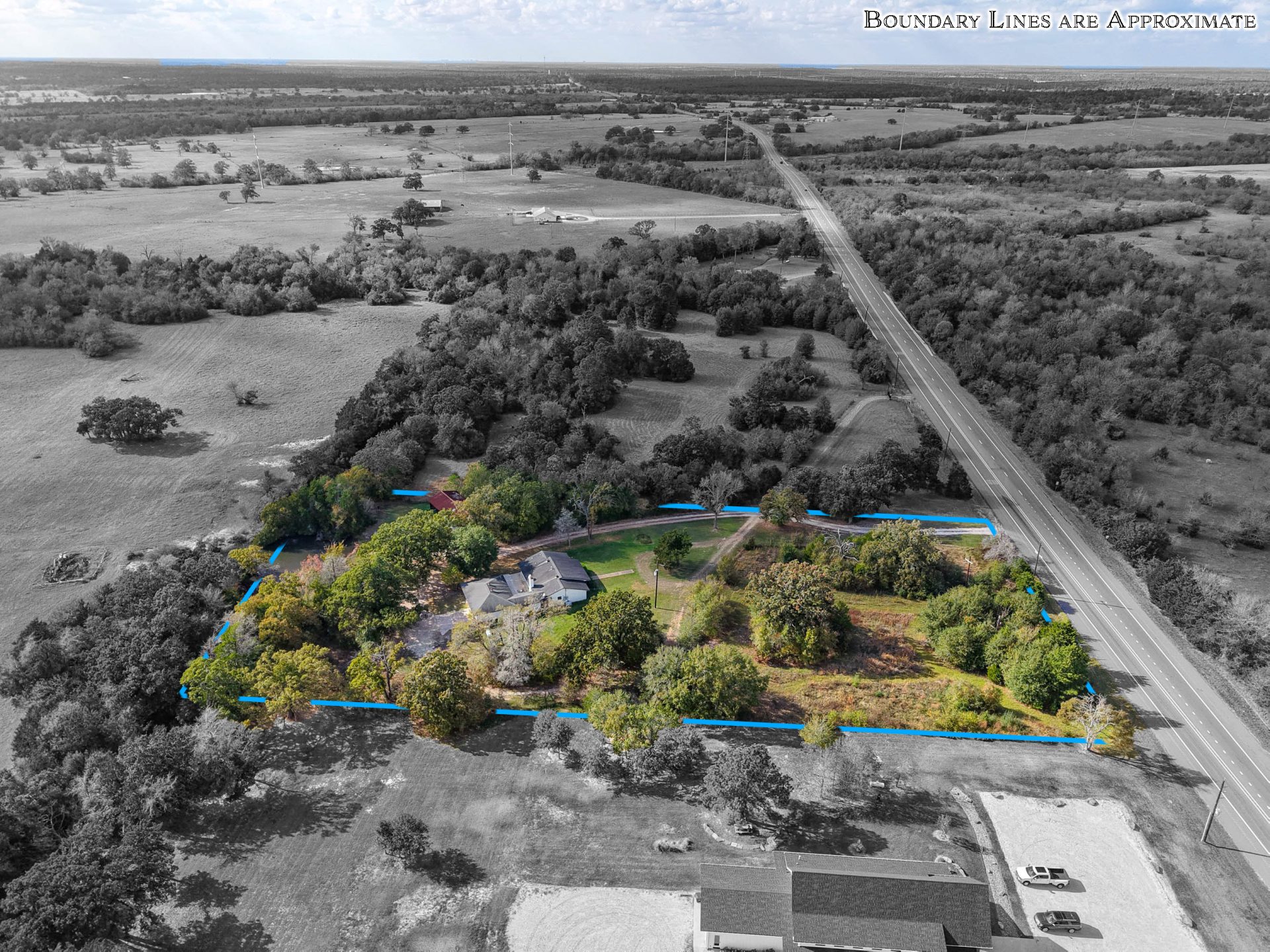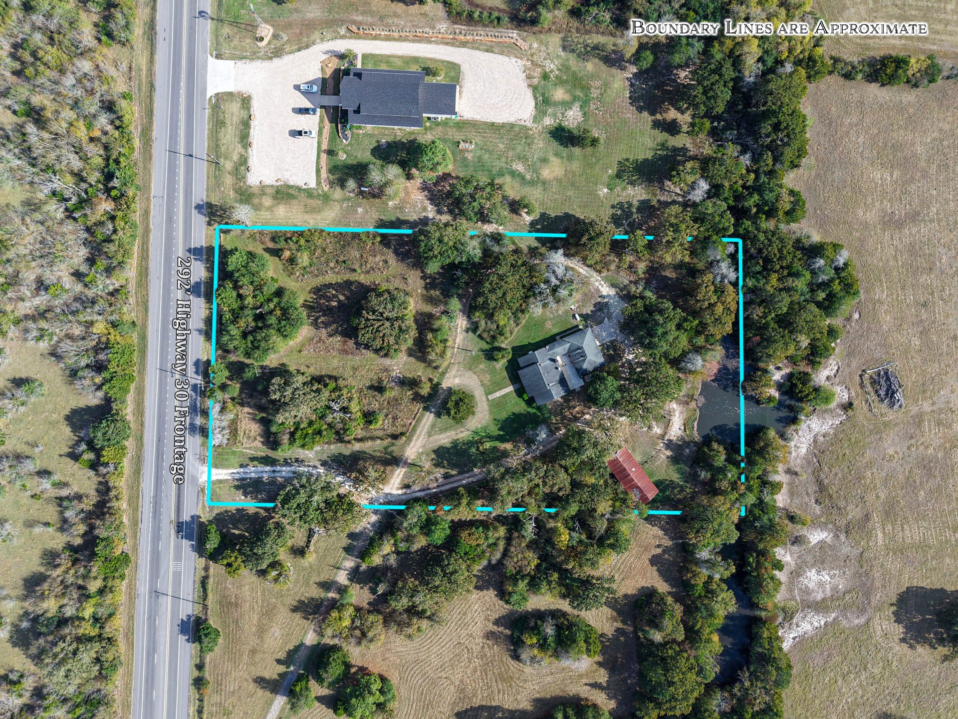 - Directions: From Roans Prairie (Highway 30/90 intersection) – Travel east on Highway 30 towards College Station for ¼ mile to the property on the right.