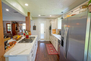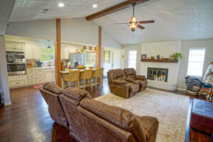 Outside, the property is surrounded by mature hardwood trees and includes a large patio that’s perfect for gatherings or relaxing outdoors. The stocked pond provides a great spot for fishing or enjoying quiet time by the water. You’ll also find a barn and a garage with a 442 sq ft apartment and half bath—ideal for guests, workspace, game room, or extra storage.