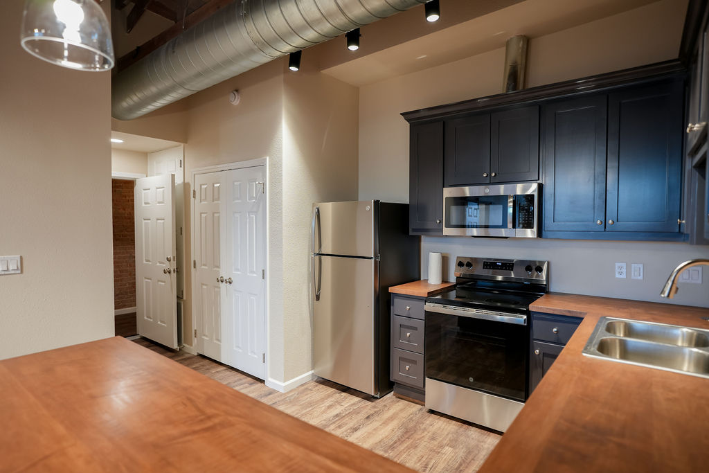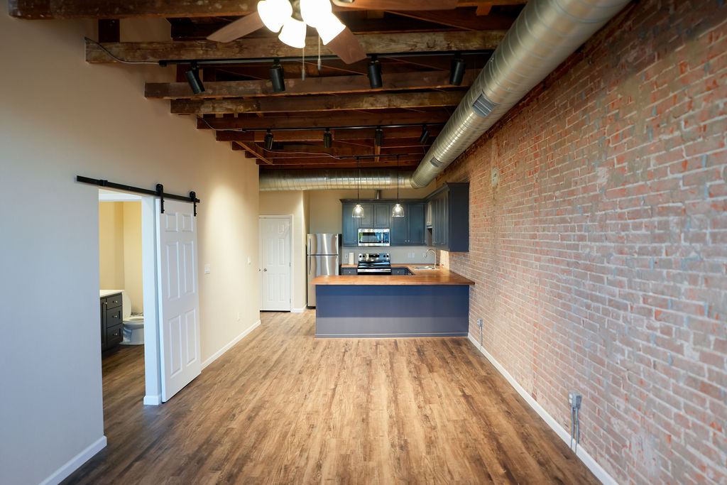 One-Bedroom Loft Apartment! This recently renovated one-bedroom loft offers the perfect balance of architectural character and modern comfort. Designed for upscale residential living, the space provides both openness and privacy with a dedicated bedroom. Exposed brick walls, wood-beam ceilings, and contemporary finishes create a refined loft atmosphere, while large windows fill the apartment with natural light. The separate bedroom allows for quiet retreat or a private workspace, making the layout ideal for flexible use. Located in the downtown district, the property boasts excellent walkability to shops, restaurants, and local conveniences, an ideal setting for both lifestyle and professional needs. All appliances are included for ease and functionality. Tenants also enjoy access to a shared outdoor deck, offering additional space to relax or entertain.