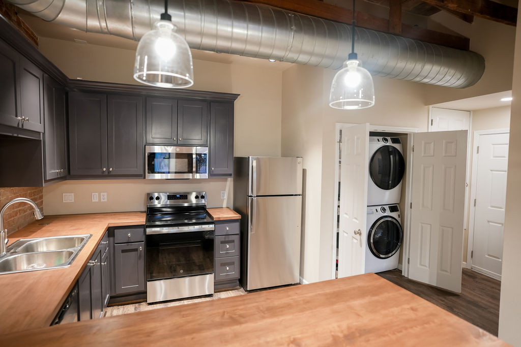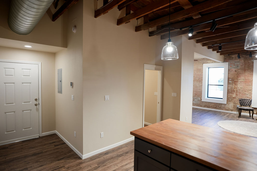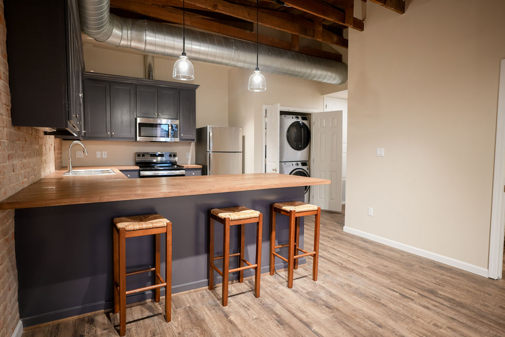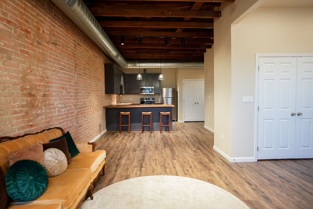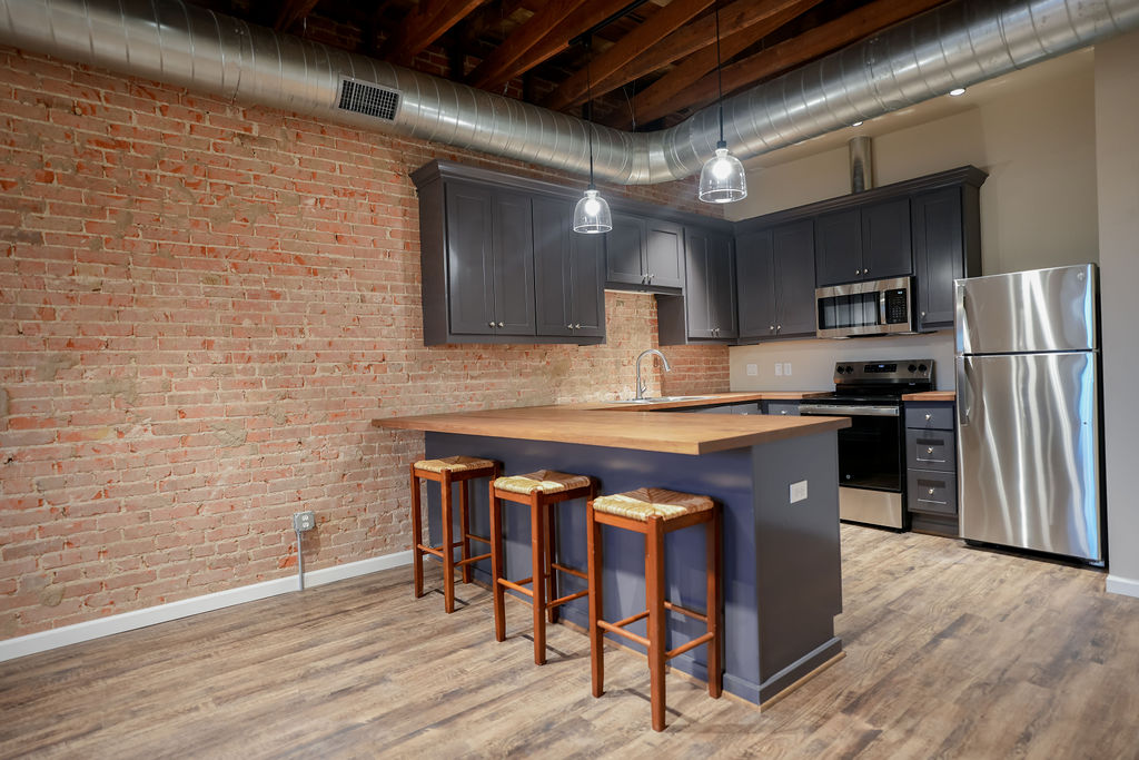 Studio Loft Apartment / Private Office – Recently Renovated! Step into a beautifully renovated studio loft that blends historic character with modern sophistication. This posh, flexible space is ideal for stylish residential living or as a refined private professional space. Featuring exposed brick walls, warm wood ceilings, and an open-concept layout, the loft offers a bright and inviting atmosphere with large windows that bring in abundant natural light. The recent renovation highlights clean finishes while preserving the authentic loft aesthetic. Located in the downtown district, the property offers exceptional walkability to shops, restaurants, and local amenities, perfect for both convenient living and professional use. All appliances are included for convenience, making the space move-in ready. Residents or occupants also enjoy access to a shared outdoor deck, ideal for relaxing, informal meetings, or entertaining.