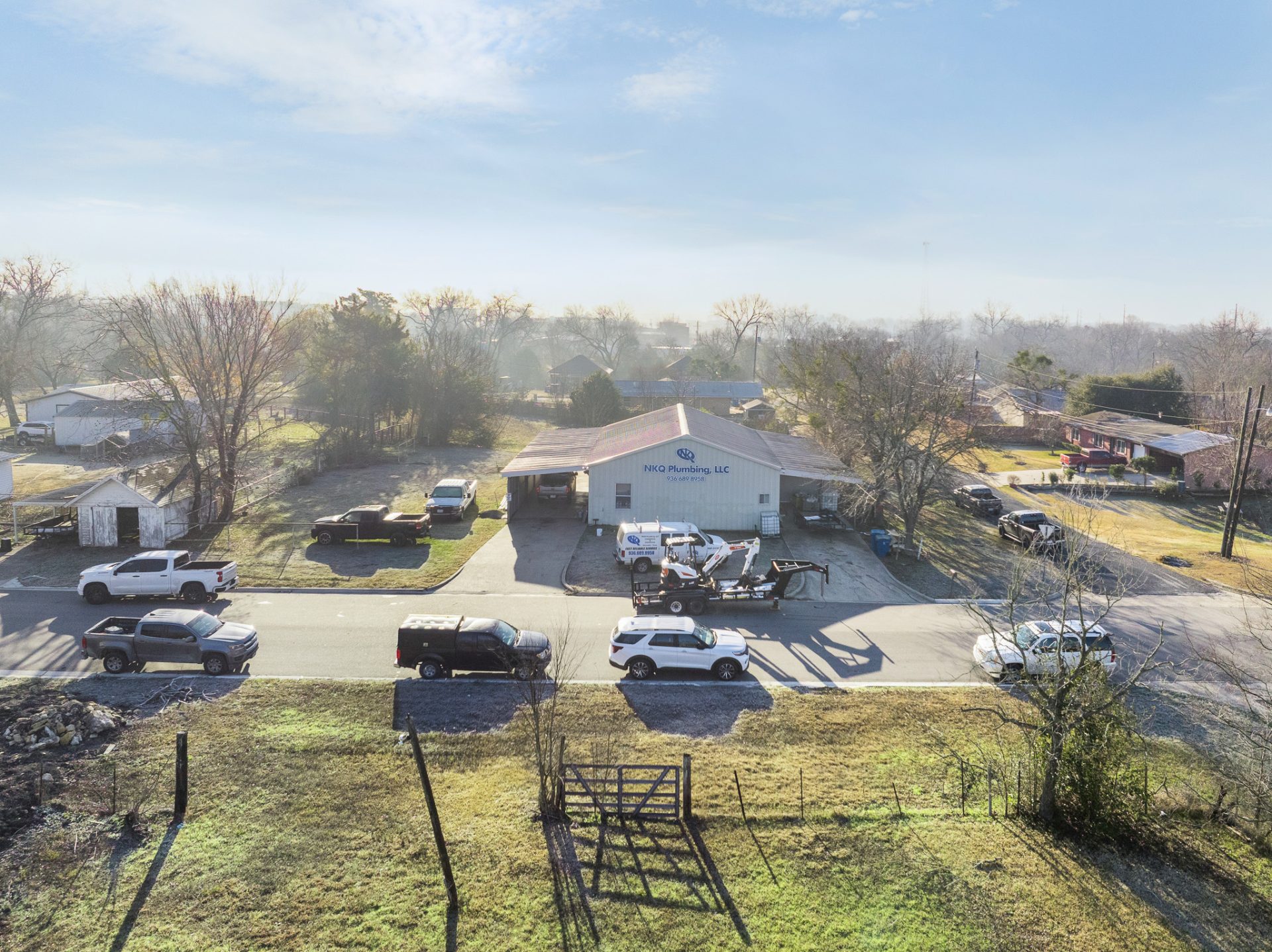 2400 SF Office/Warehouse on Corner Lot in Navasota, TX - Position your business with the flexibility of this 2,400 SF office-warehouse situated on a .77-acre corner lot in Navasota. Currently home to NKQ Plumbing, the property is well-suited for contractors, service businesses, or owner-operators seeking functional space with room to grow. The improvements include approximately 1,800 SF of open warehouse space paired with 600 SF of heated and cooled office space, offering an efficient layout for operations and administration. In addition, the property features approximately 1,800 SF of lean-to structures, ideal for covered storage, equipment, or work areas. Two separate driveway entrances provide convenient access and circulation for vehicles, trailers, and deliveries. Zoned R-1B within a Medium Density Residential District, allowable uses include single-dwelling homes, real estate offices, and accessory businesses. Buyers should verify intended use with the City of Navasota. A unique opportunity to acquire a versatile property with existing improvements and ample land for a yard or expansion.