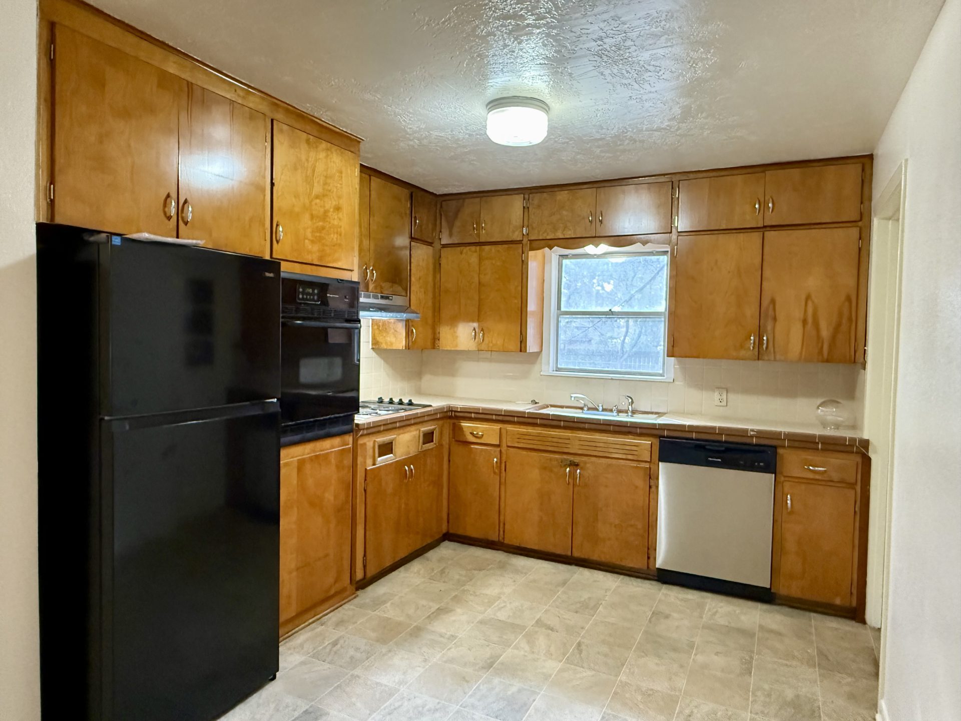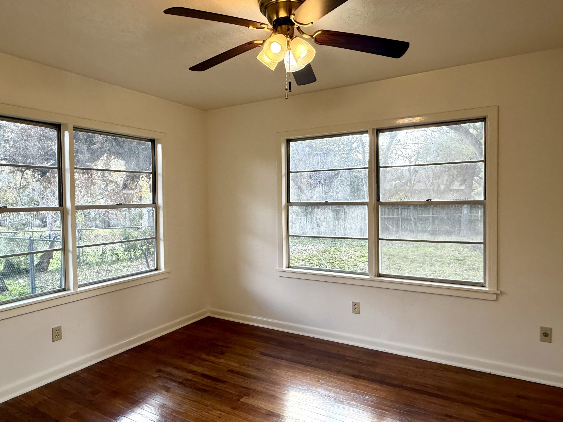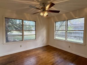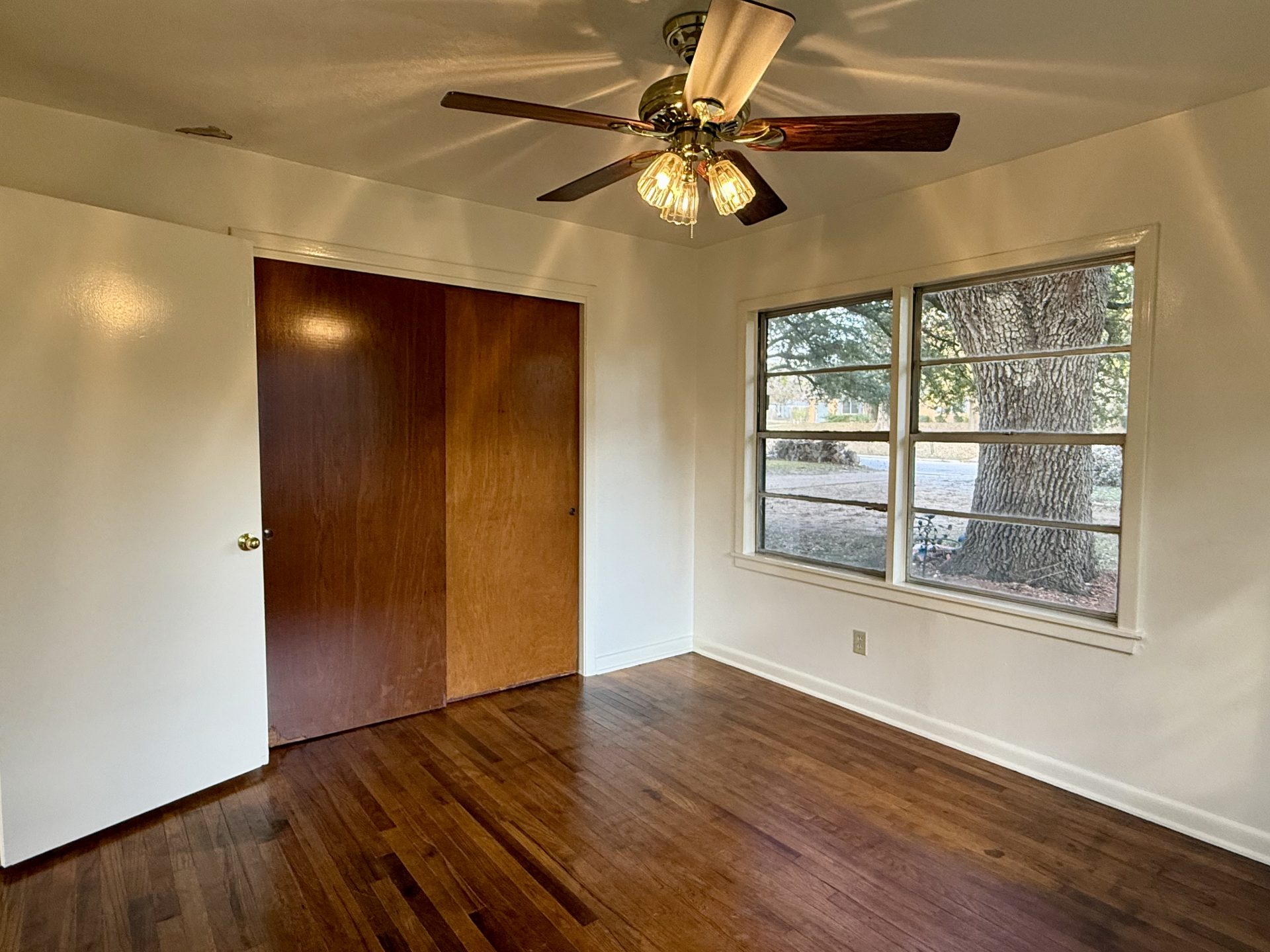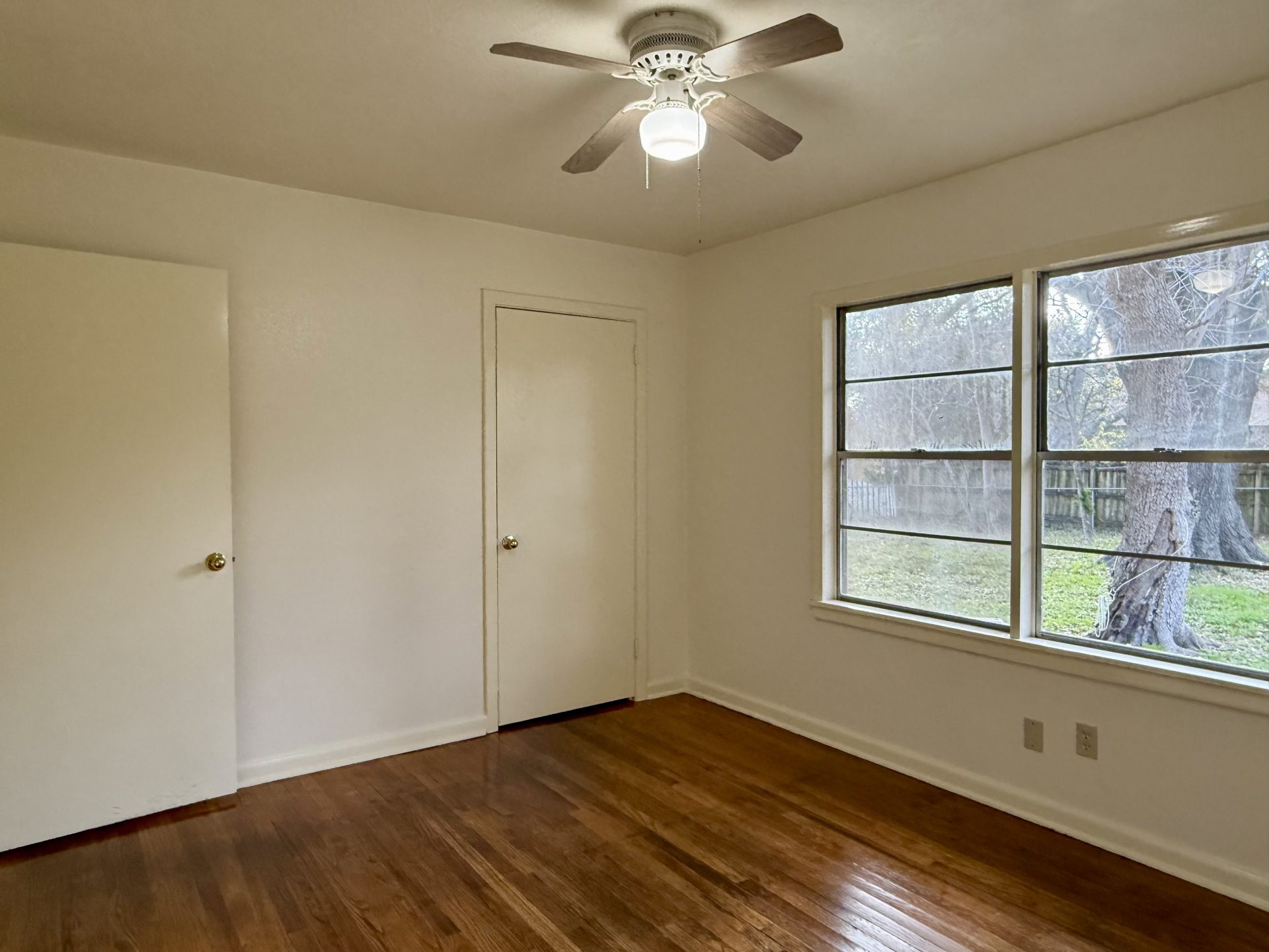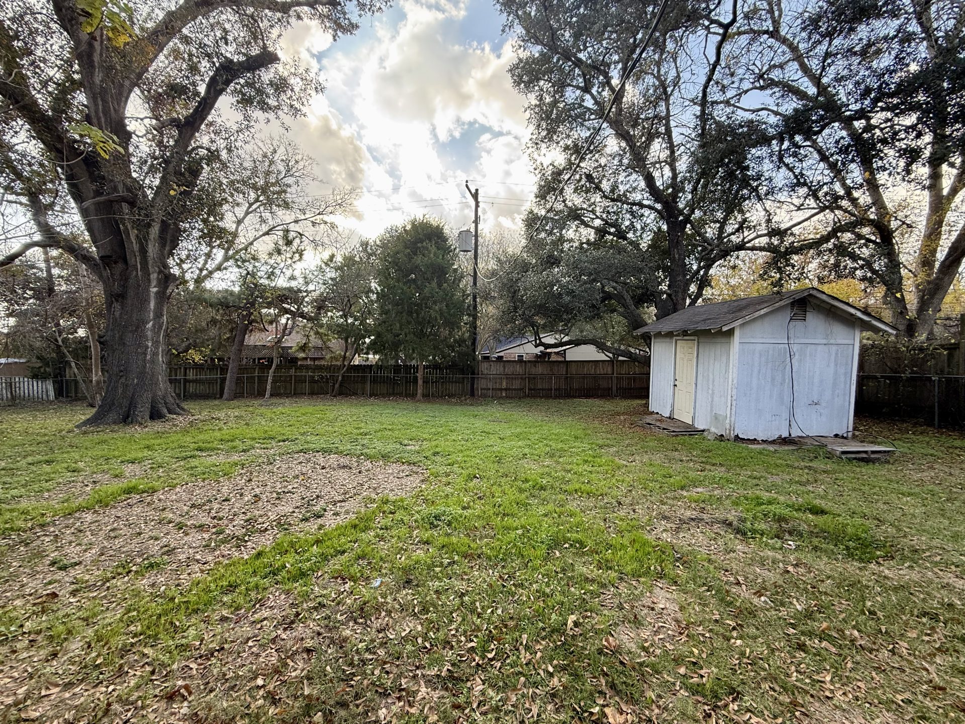 Charming 3-bedroom, 1-bath 1950s home available for move-in, nestled on a large lot in a quiet, established neighborhood. This cozy residence blends vintage character with comfortable living, featuring hardwood floors, classic details, and a functional layout. The expansive yard is shaded by towering live oak trees, creating a park-like setting. Fenced yard. Enjoy the tranquility of a low-traffic area while still being conveniently located near local amenities.