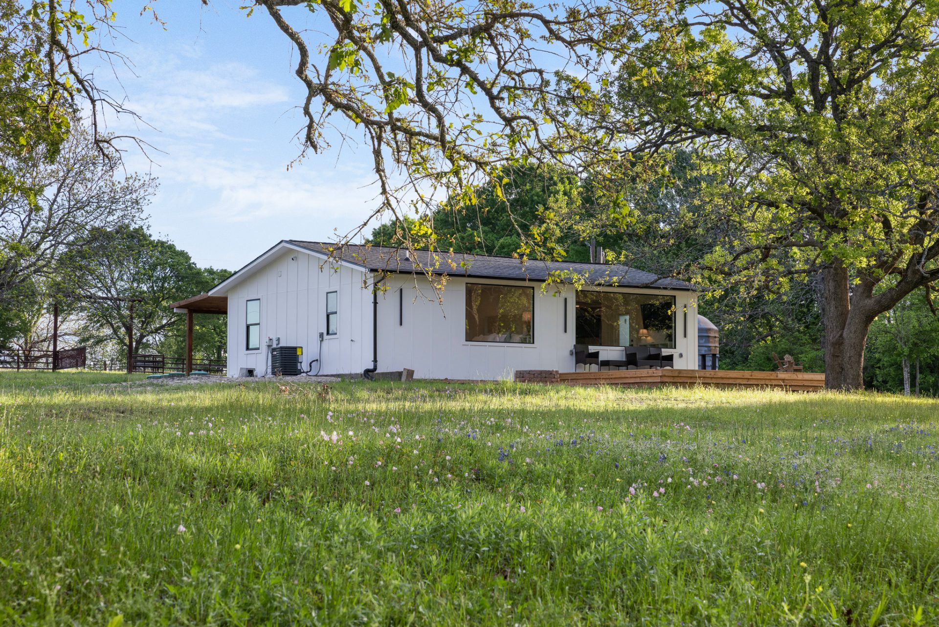 Tucked away on 10 peaceful acres in Anderson, this fully renovated 2-bedroom, 2-bath home offers a private oasis for full time or part time living. The land featuring a stunning mix of scattered mature trees, natural woods, and gently rolling terrain, creates both open views and secluded spaces to explore. Inside, the home was thoughtfully redesigned with an open-concept living area that feels bright, airy, and connected to nature. The living room is framed by a dramatic butt-glass window that captures sweeping views of the property, creating a seamless visual transition between indoors and out. Natural light pours in, making the surrounding landscape part of your everyday living experience. The primary suite is its own retreat, also featuring a butt-glass window that brings the outside elements in and offers peaceful views to wake up to each morning. Both bathrooms showcase beautifully finished walk-in showers. Outdoor living is just as impressive. A sprawling front porch welcomes you home and provides the a great space to unwind. Out back, a large deck overlooks the acreage, ideal for entertaining, yoga or workout practices, or simply enjoying the quiet. A dedicated firepit area invites you to gather under the stars and fully embrace the serenity of country living. Whether you're searching for a weekend escape or a full-time residence surrounded by nature, 4399 Silentwood Lane is a true oasis offering privacy, beauty, and refined comfort in one exceptional property.