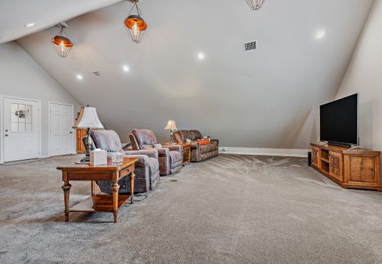 Amazing home in a highly desired subdivision, Granite Ridge Ranch, a lightly restricted community minutes away from downtown Anderson, TX. The property has a picturesque landscape with rolling terrain and beautiful trees, including a stocked pond on over 31 acres. Completely fenced with an automatic front gate that opens up to a curved concrete driveway that includes extra parking. Kitchen is a chefs delight with an open concept to eating and living areas. This home has a spacious primary bedroom with a gorgeous bathroom that includes a walk-in shower with multiple shower heads and separate vanities. Secondary bedrooms have walk-in closets. Custom features include home office, vaulted ceilings, crown molding, sunroom, whole house generator, tile flooring throughout the home with carpet in the bedrooms. Large, fenced in backyard for your pets. Plenty of room in the separate building that can be used as a workshop or garage which includes a huge upstairs bonus room with full bath.
