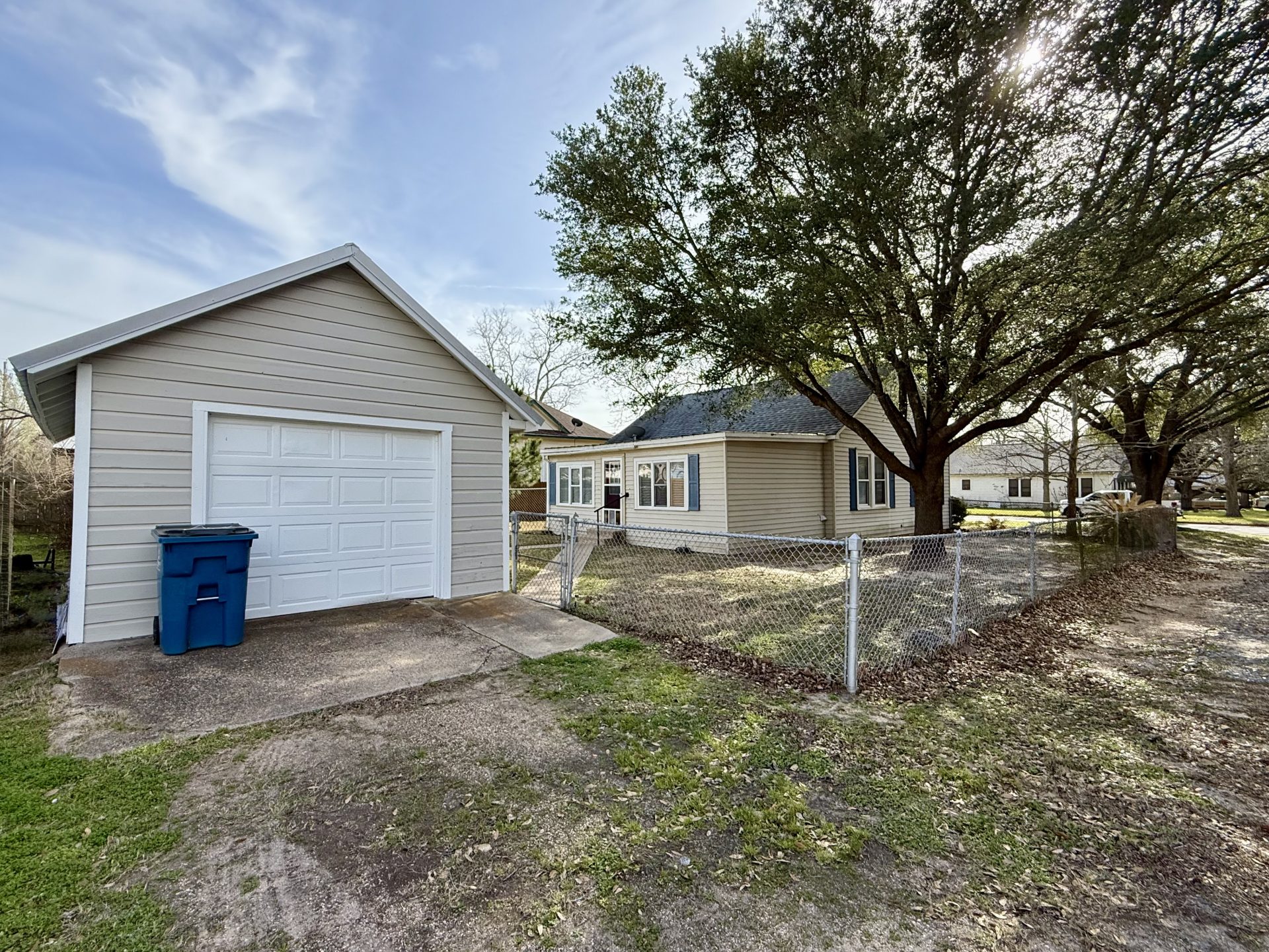 Built in the 1940s–50s and located in an established Navasota neighborhood, the home features 2-bedrooms, 1.5 baths, updated paint and flooring. The functional layout offers a flowing living, dining, kitchen, and bonus sunroom, along with two cozy bedrooms and 1.5 baths. Outside, enjoy the mature, towering trees and a fully fenced yard, including a separate fenced area ideal for pets. A detached single-car garage provides secure parking and extra storage space. Refrigerator, washer, and dryer included. Experience the best of small-town living with this home’s combination of comfort, practicality, and timeless character, ready to welcome its next residents.